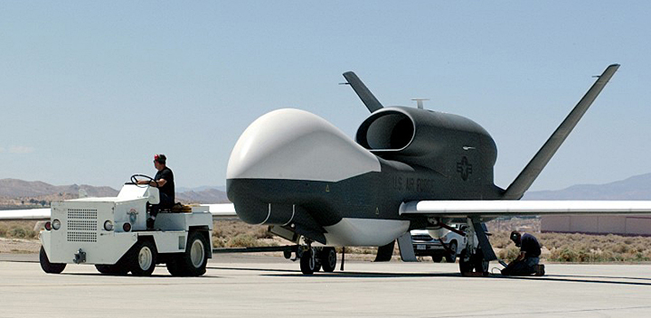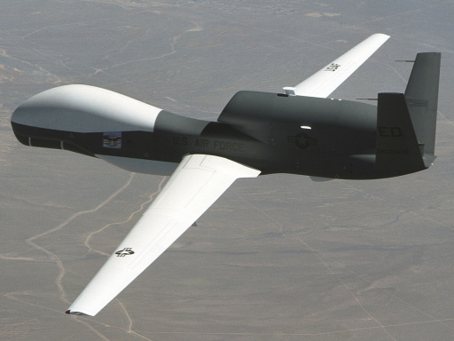 グローバルホークは約1万8千メートルの高高度を飛行し、約560キロ先まで見通す偵察能力を持つ。